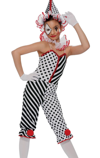 TUTU: (Separate) Black and white striped spandex white and black polka dot spandex, and white tricot